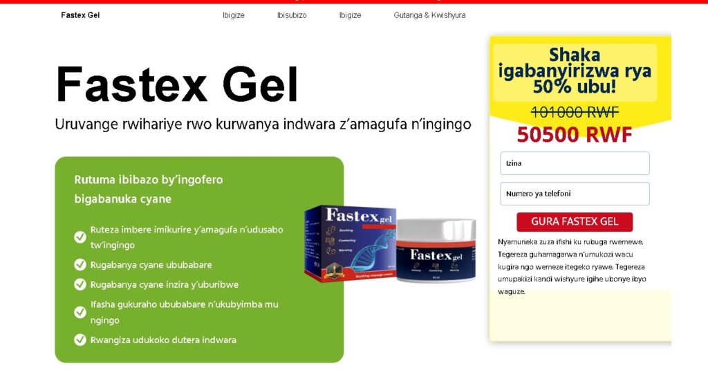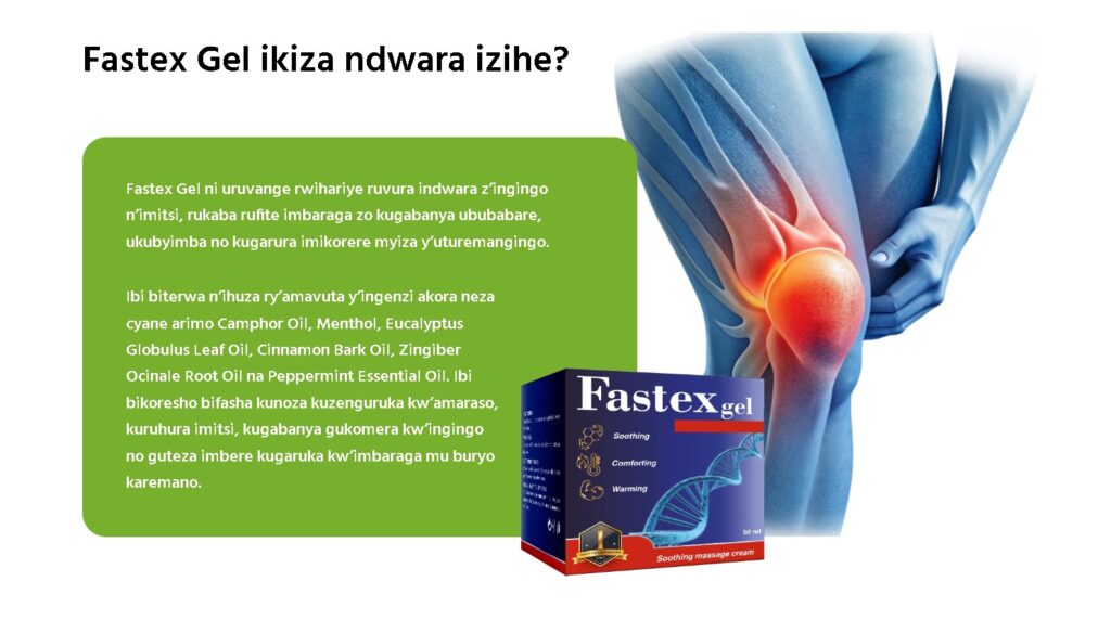 Fastex Gel ni geli yihariye ifasha ingingo n’imikaya kugumana imbaraga n’ubwisanzure bwo kugenda mu Rwanda, hifashishijwe uburyo bwizewe kandi bufite ubuziranenge.